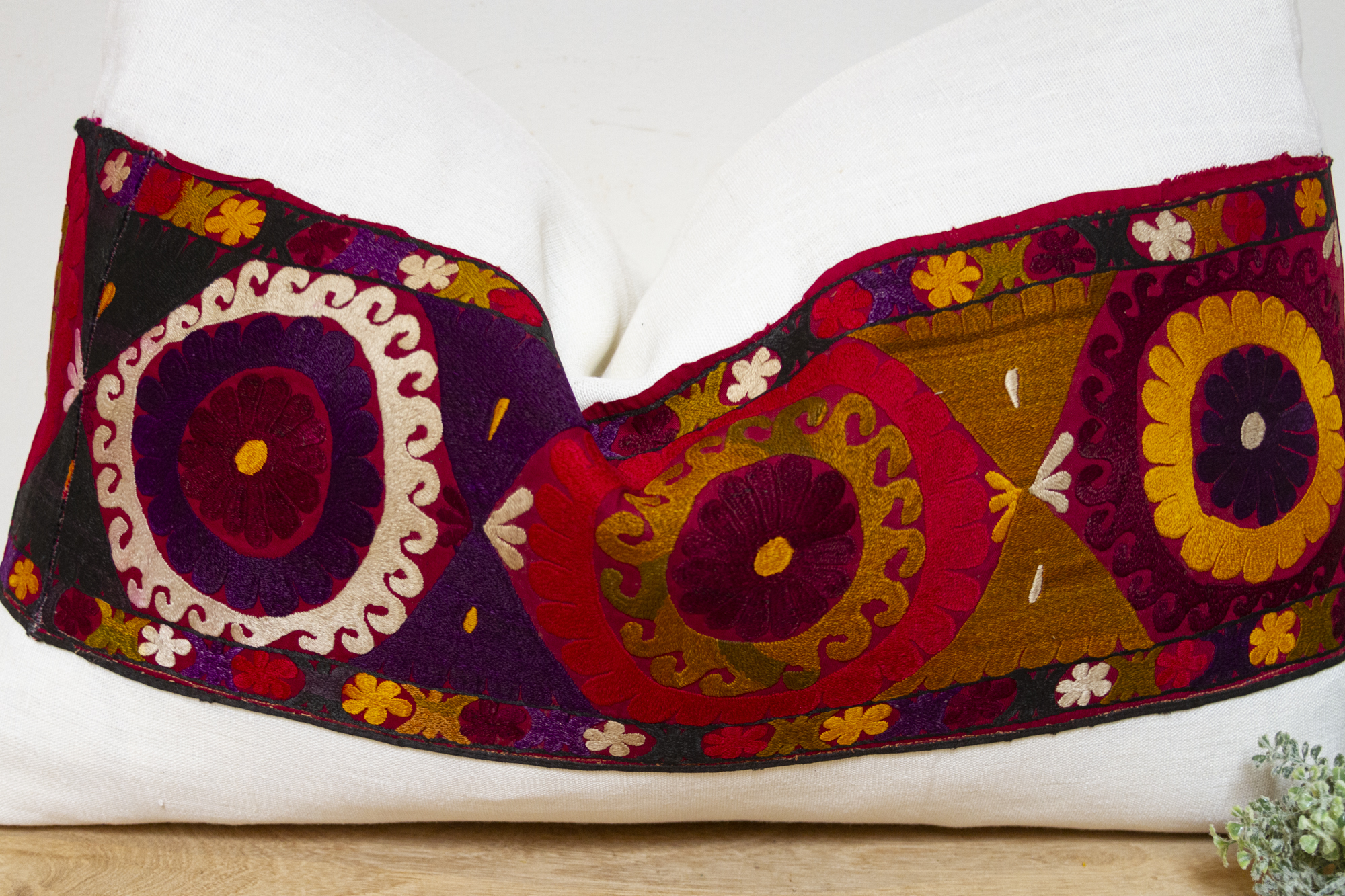 Jana Antique Uzbek Suzani Linen Pillow