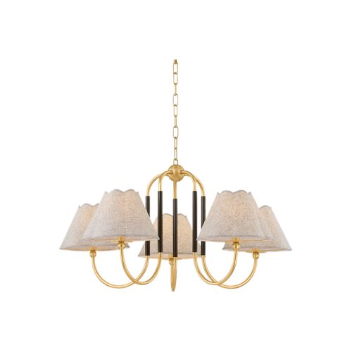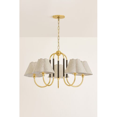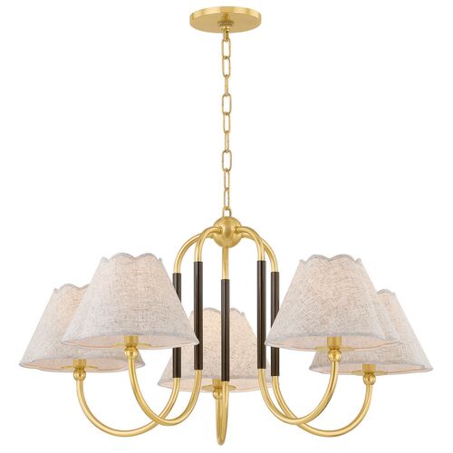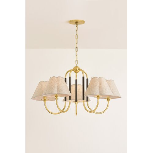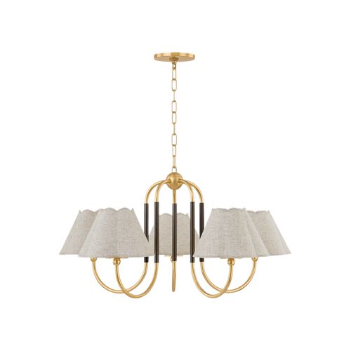 Janie 5-Light Chandelier, Aged Brass/True Bronze/Natural Linen