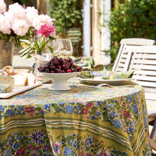 Couleur Nature comprises a collection of elegant table linens designed to reflect the idyllic landscapes, sumptuous colors, and natural beauty of Southern France. We aim to bring a Provençal sense of effortless beauty, rich color, and joie de vivre to your life and home — no matter where you live. Our original designs are carefully crafted in Paris before being hand-printed by skilled artisans in Jaipur, India. Not only do these vibrant products enliven your home and table, they also provide living wages and benefits for the artisans who make them.