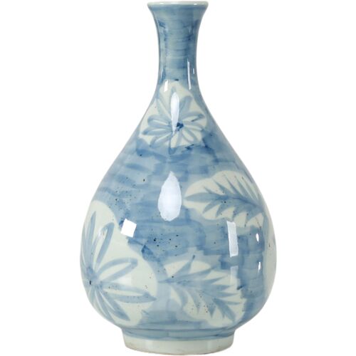 Jasira Floral and Leaf Motif Decorative Vase, Blue/White