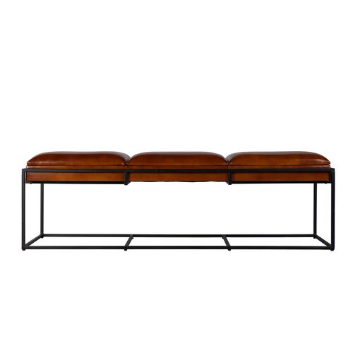 Jonas 62" Leather Accent Bench, Brown