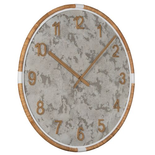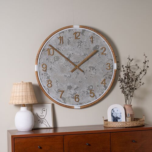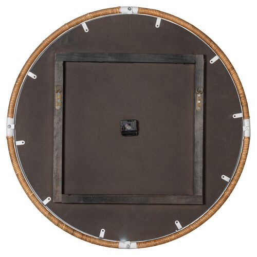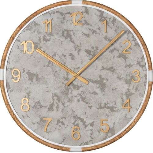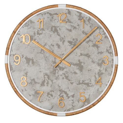 Jory Rattan Wall Clock, Gray/Gold