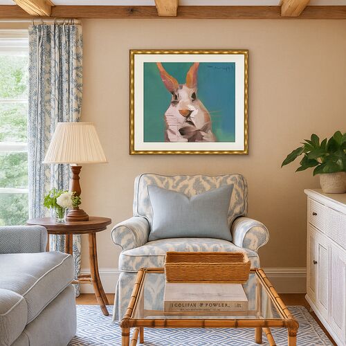 Joseph Mota, Curious Rabbit Framed Painting, 20.25" x 20.25"