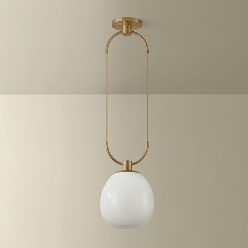 Jove Glass Globe Pendant, Seeded Cloud/Patina Brass
