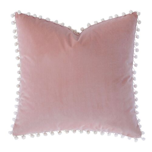 Jules Ball Trim Velvet Pillow, Pink