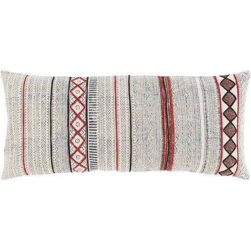 Kallea Block Print 14"x32" Lumbar Pillow, Red/White