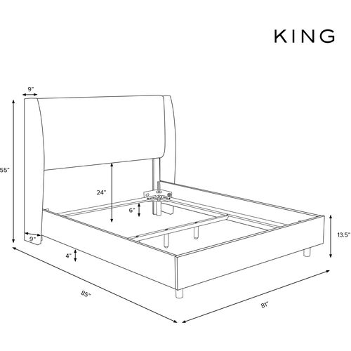 King Bed Frame with Headboard Modern