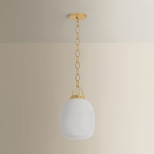 Kendall Seeded Glass Pendant, Clear Cloud/Aged Brass