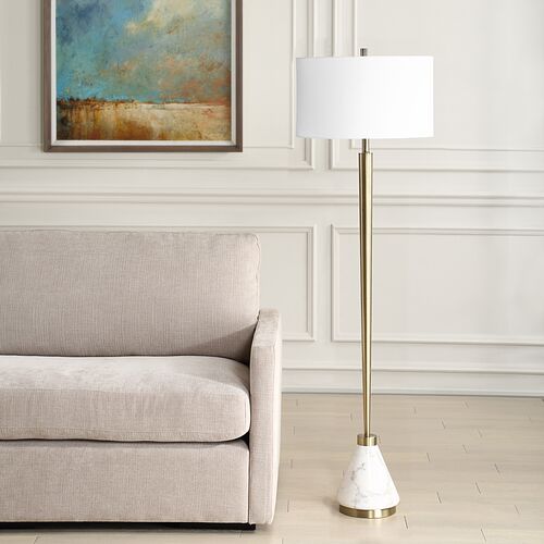 Harriet Marble Floor Lamp, Brass/White