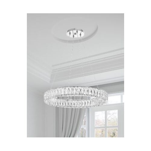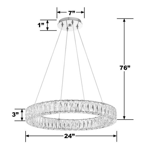 Kinsley 24" LED Hand Cut Crystal Ring Chandelier, Polished Chrome