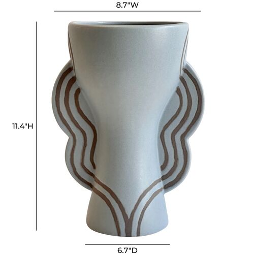 Mirell Ceramic Line Art Wavy Vase, Sage Green