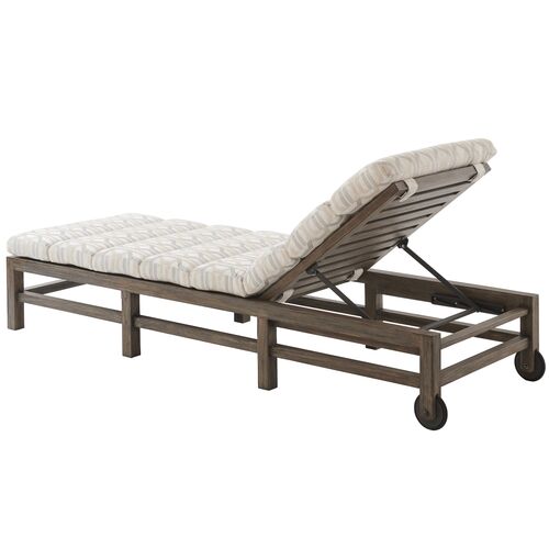 La Jolla Outdoor Teak Chaise Lounge, Geometric Beige/Tan Sunbrella