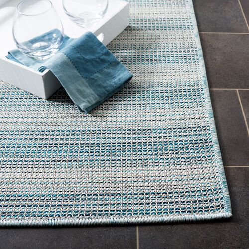 Lakeside Outdoor Rug, Aqua/Ivory