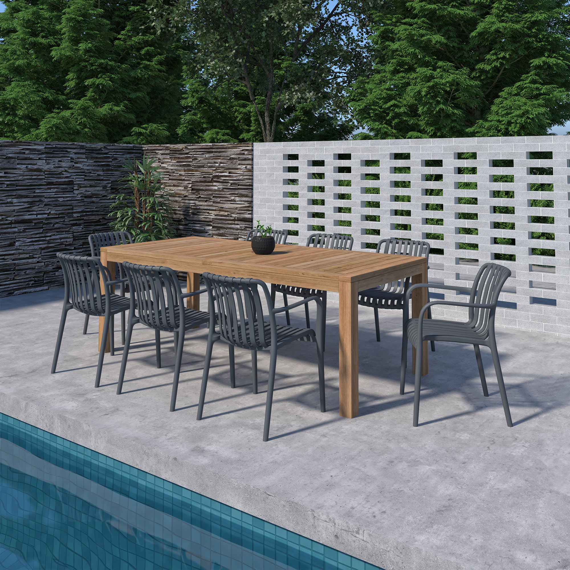 Lanai 9-Pc Outdoor Rectangular Teak Dining Set
