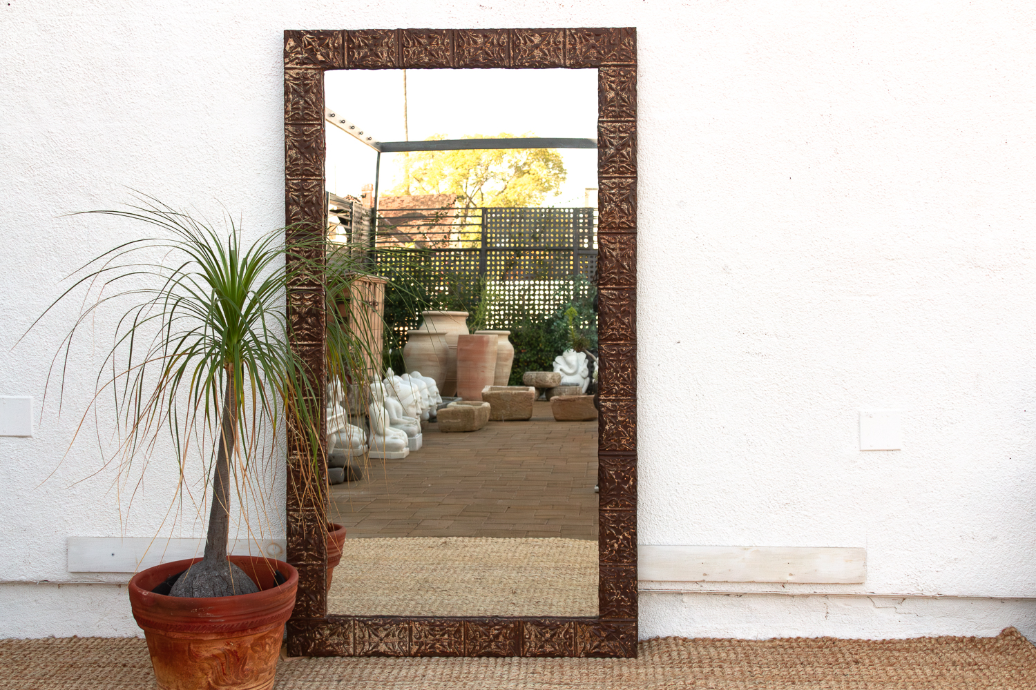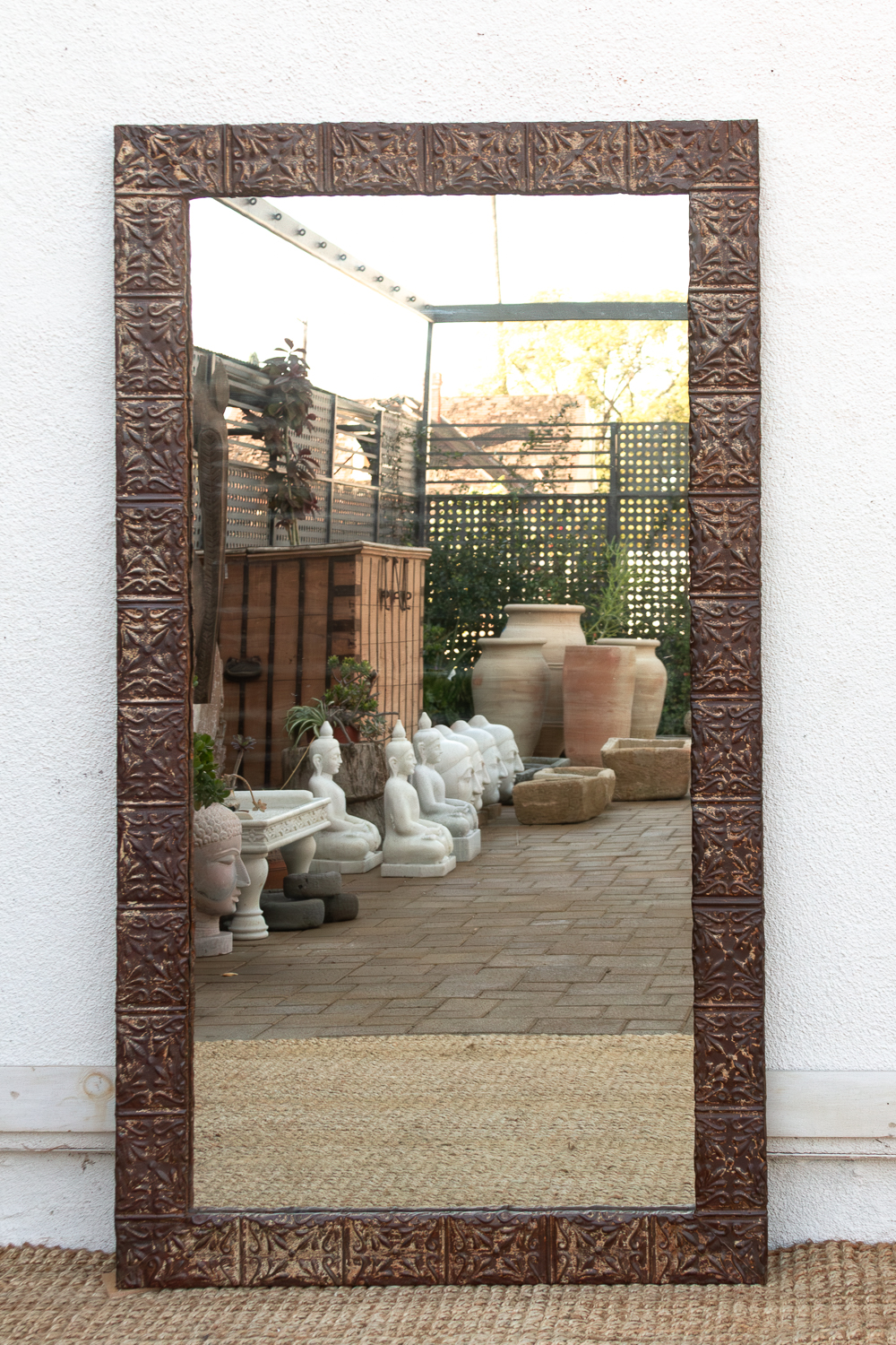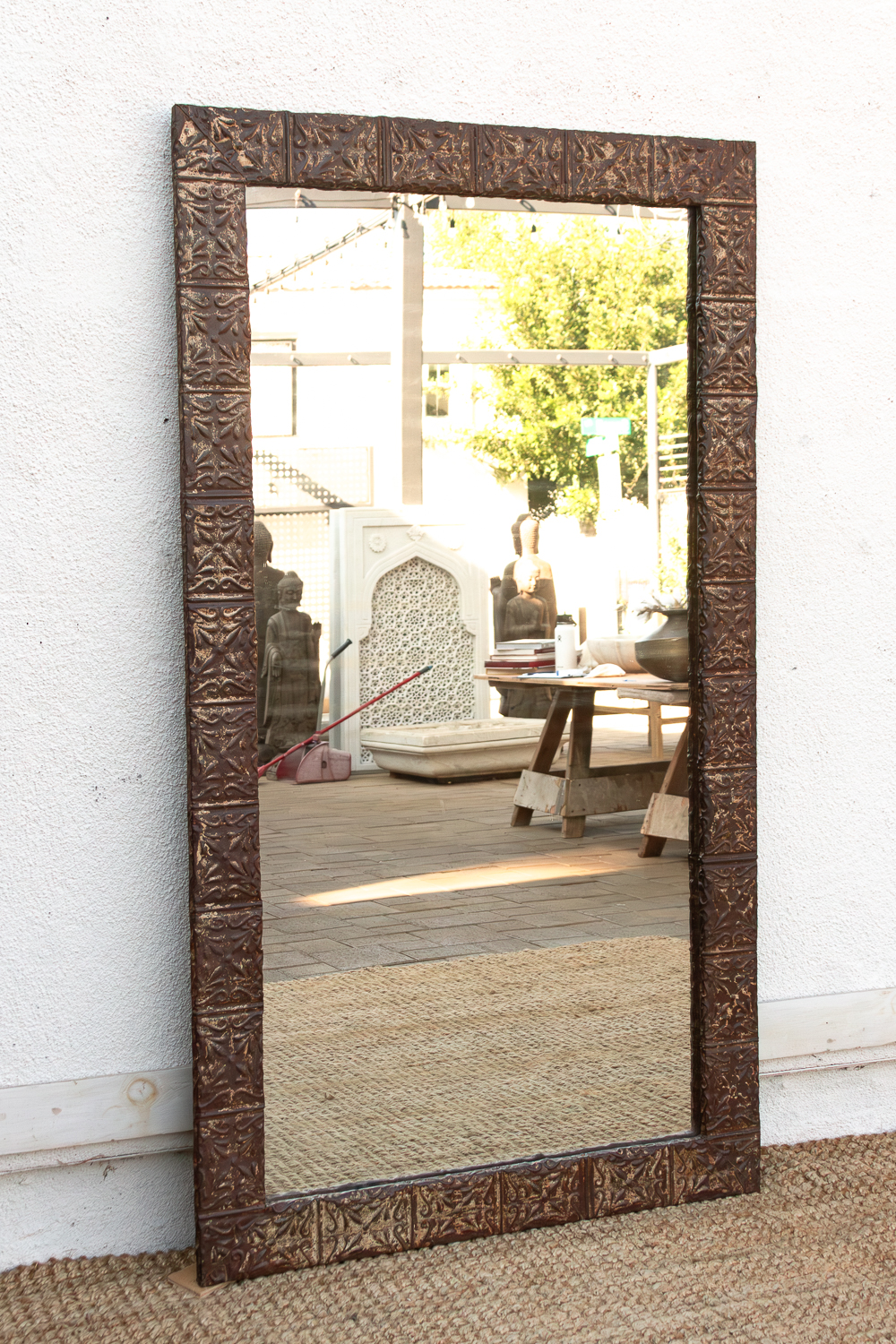 Large Antique Tin Tile Floor Mirror