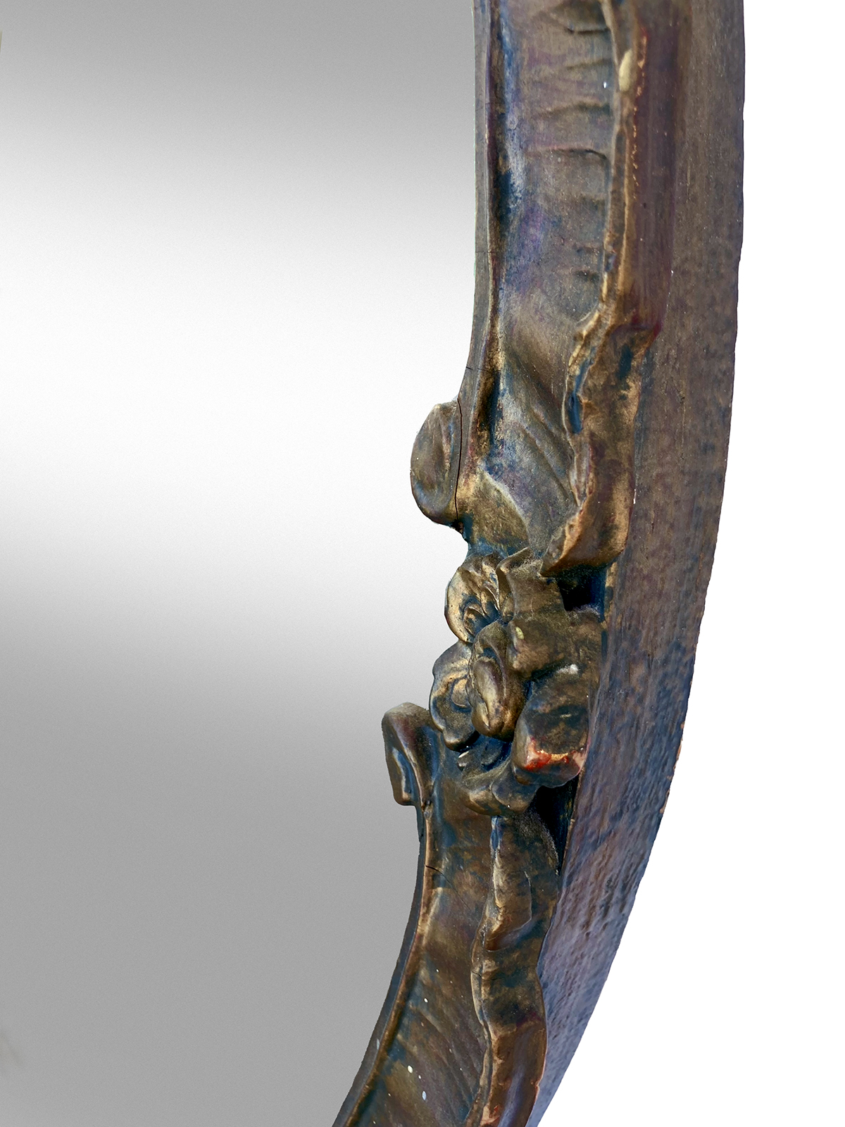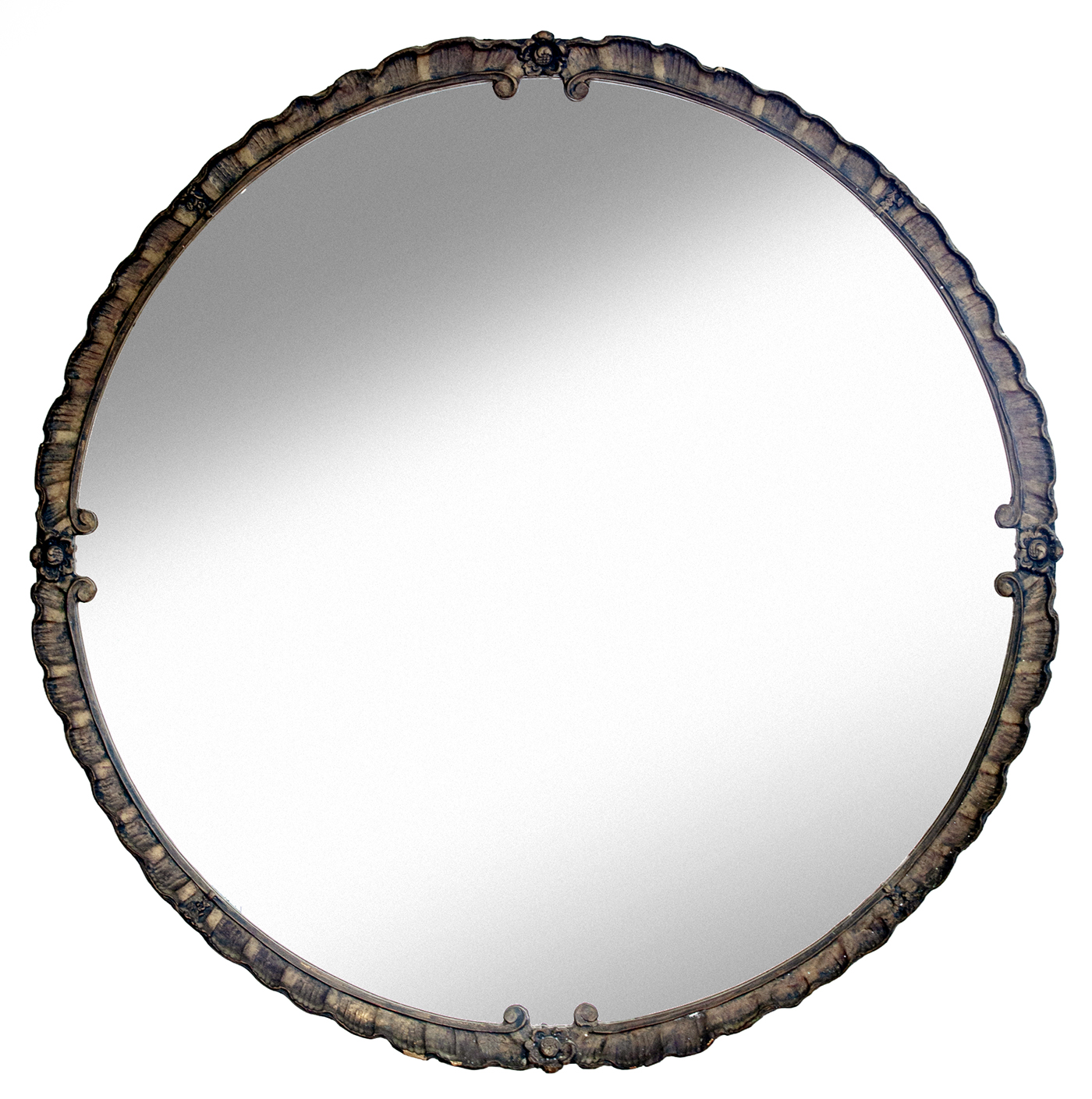 Large Art Deco Round Carved Wood Mirror