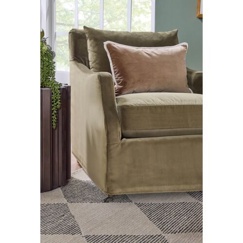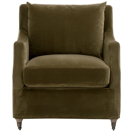 Larkin Slipcover Club Chair, Olive Velvet