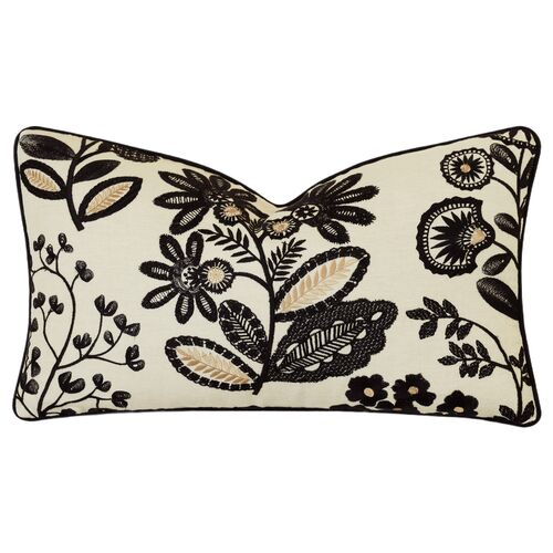 Lars 13x22 Embroidered Lumbar Pillow, Black/Gold