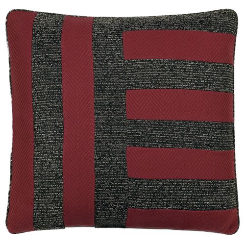 Lennox 22x22 Striped Pillow, Charcoal/Red
