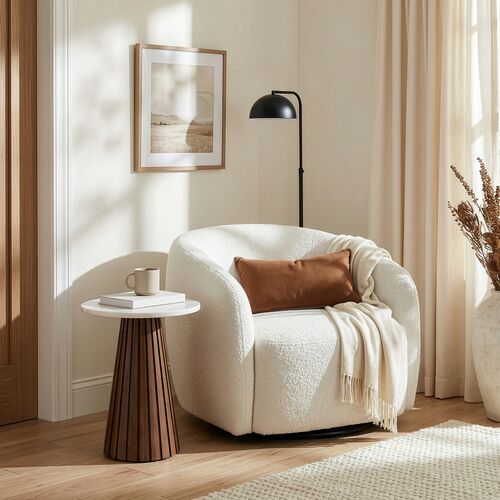 Cadaqu��s Swivel Rocker Faux Fur Accent Chair, Vanilla/Warm Oak