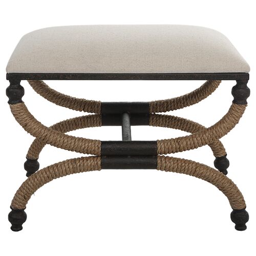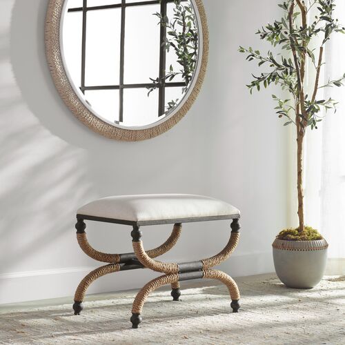 Lorcan Small Flax/Rope Bench, Natural/Cream