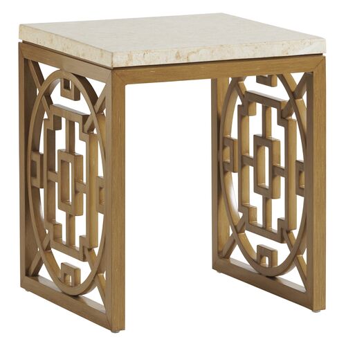 Los Altos Valley View Outdoor Aluminum/Mactan Stone Top Square End Table, Light Tan/Cream