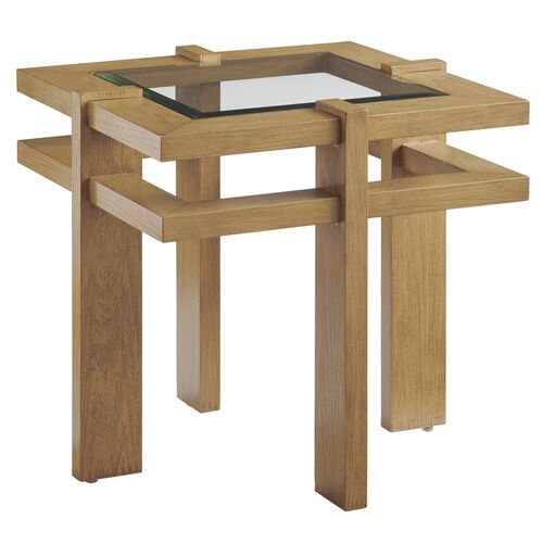 Los Altos Valley View Outdoor Aluminum Square End Table, Light Tan
