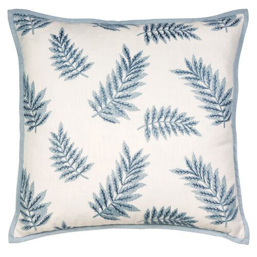 Lotty 22x22 Embroidered Leaf Pillow, Blue/White