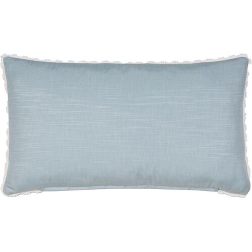 Lotty 13x22 Embroidered Leaf Lumbar Pillow, White/Blue
