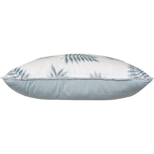 Lotty 13x22 Embroidered Leaf Lumbar Pillow, White/Blue