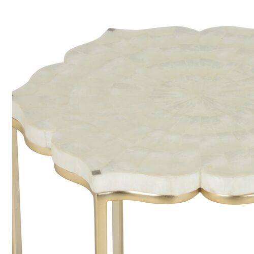 Lotus Flower Shell Side Table, Gold/White