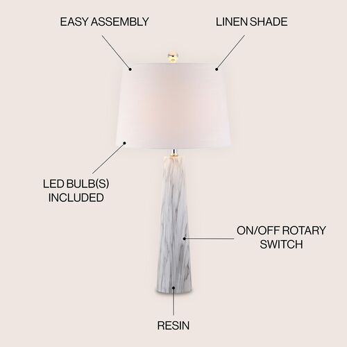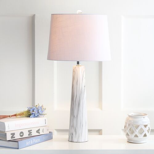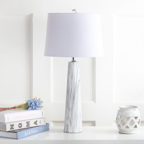 Emil Faux Marble Table Lamp, White