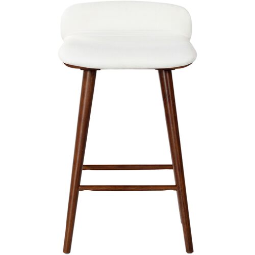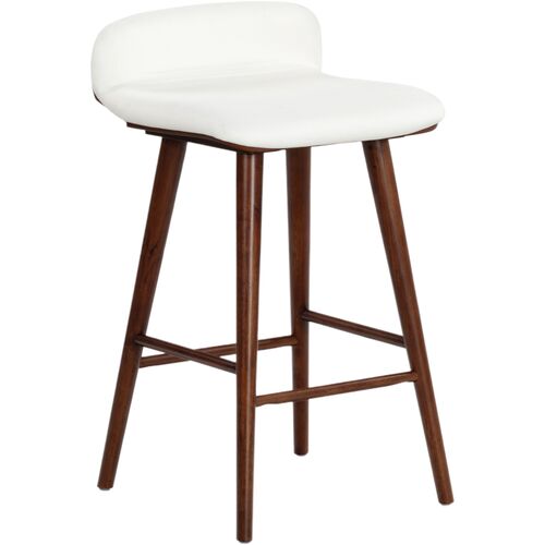 Lyron Performance Linen Barstool, White/Walnut