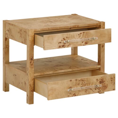 Zevar Burl 2-Drawer Nightstand, Walnut