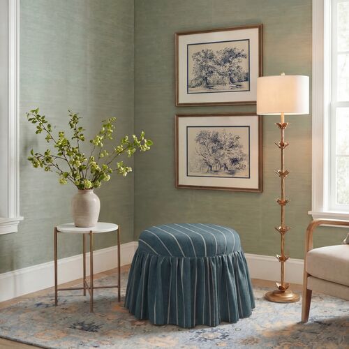 Bernadette Ruffle Skirted Round Ottoman, Willow Vine