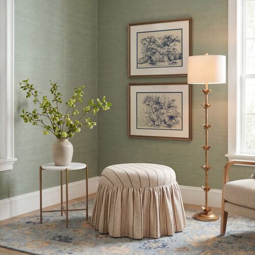 Bernadette Ruffle Skirted Round Ottoman, Willow Vine