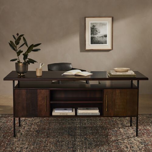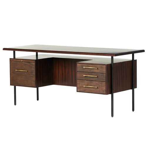Solomon Leather-Top Desk, Distressed Black Oak