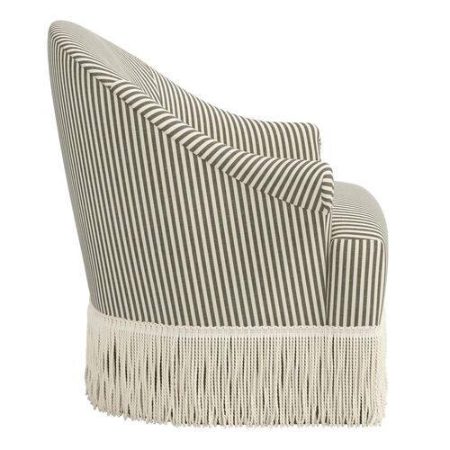 Stoffer Home’s debut upholstered furniture collection seamlessly merges classic interiors with contemporary silhouettes and timeless fabrics. The standout Michigan Bird Toile, adorned with native flora and fauna, complements modern interpretations of traditional stripes and block prints within the collection. Anchored in neutrals such as cream, taupe, and gray, with surprising accents of seaglass and olive, the palette resonates with the colors Stoffer Home has become known for. The furniture silhouettes offer a fresh take on elegant designs, featuring stylish elements like bullion fringe and ruffles.