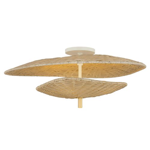 Marigold Wicker Semi Flush, Natural/Aged Brass