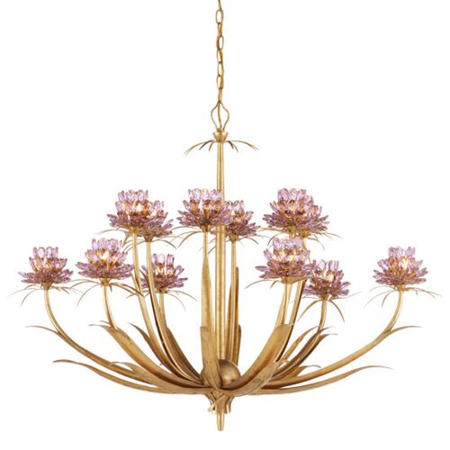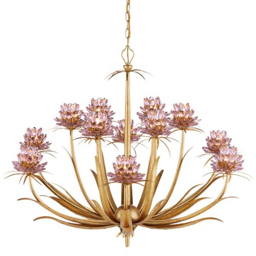 Marilee Crystal Chandelier, Pink/Dutch Gold Leaf