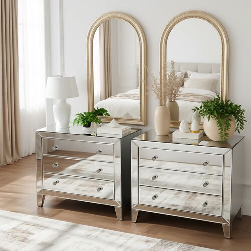 Mathus 3-Drawer Nightstand, Mirrored