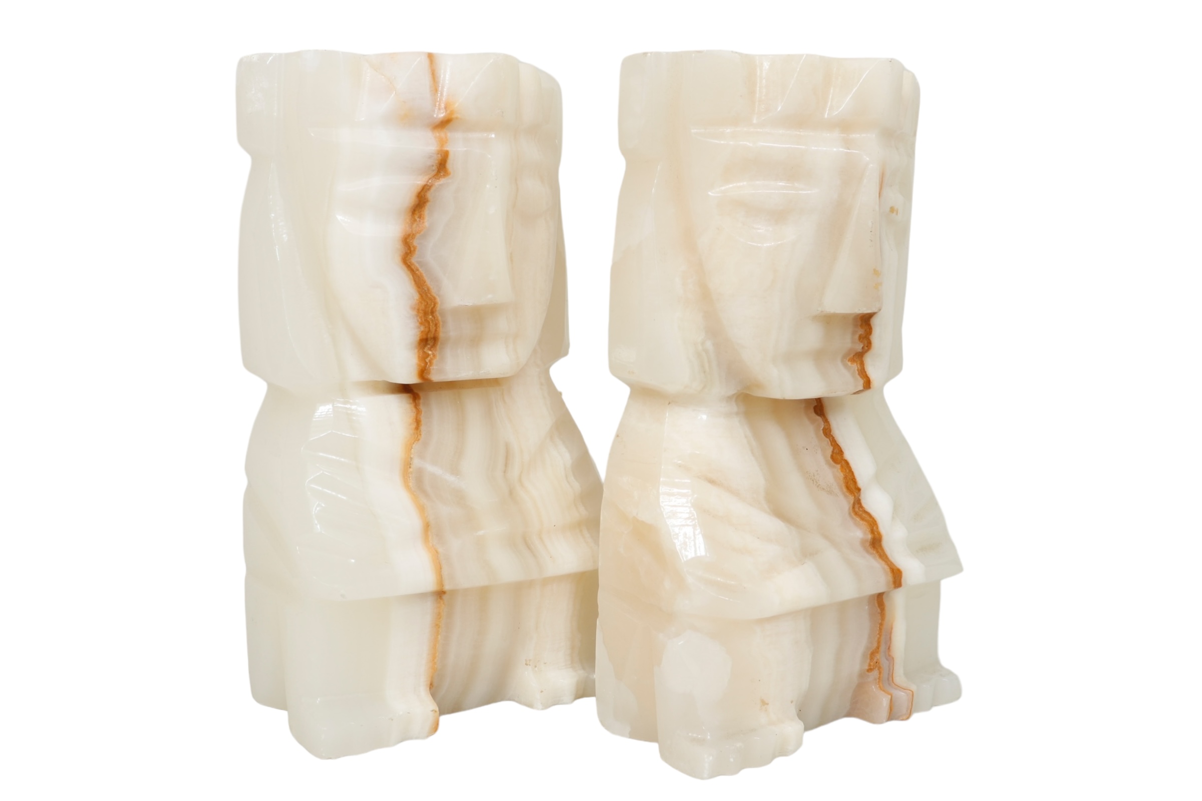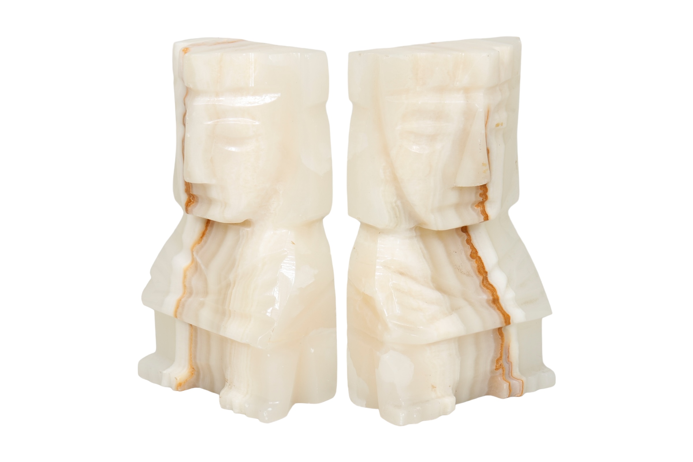 Mayan Figure Agate Bookends - a Pair