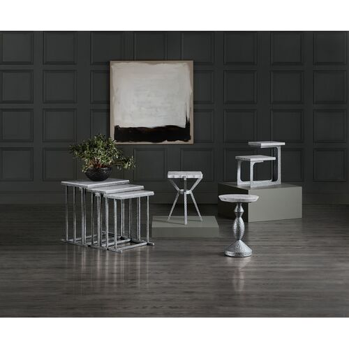 Melange Glendon Marble Top Side Table, Silver
