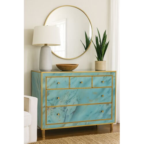 Melange Sorrell 5-Drawer Hand-painted Glass Chest, Aqua Blue