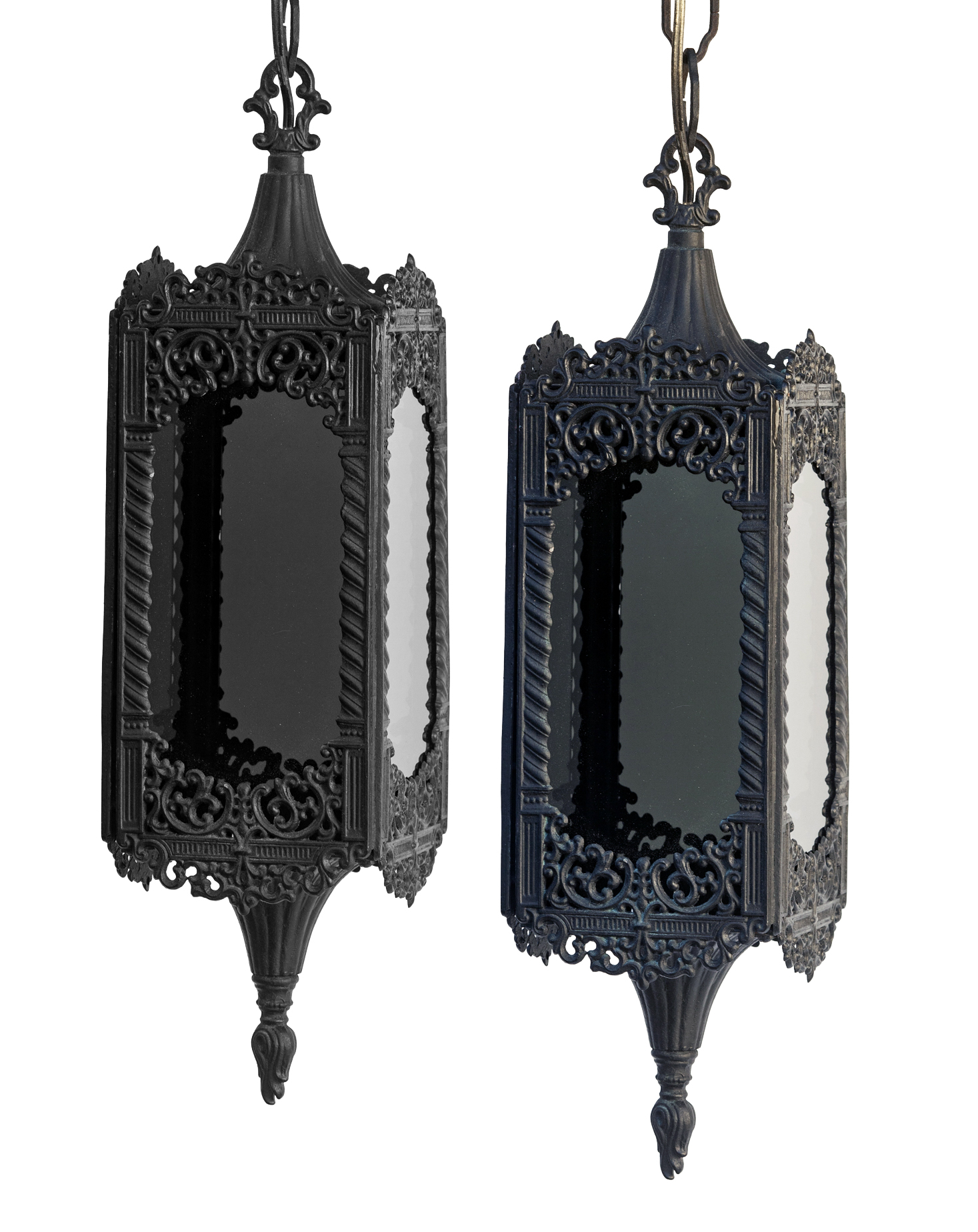 Mid-century Moorish Black Lanterns; a pr