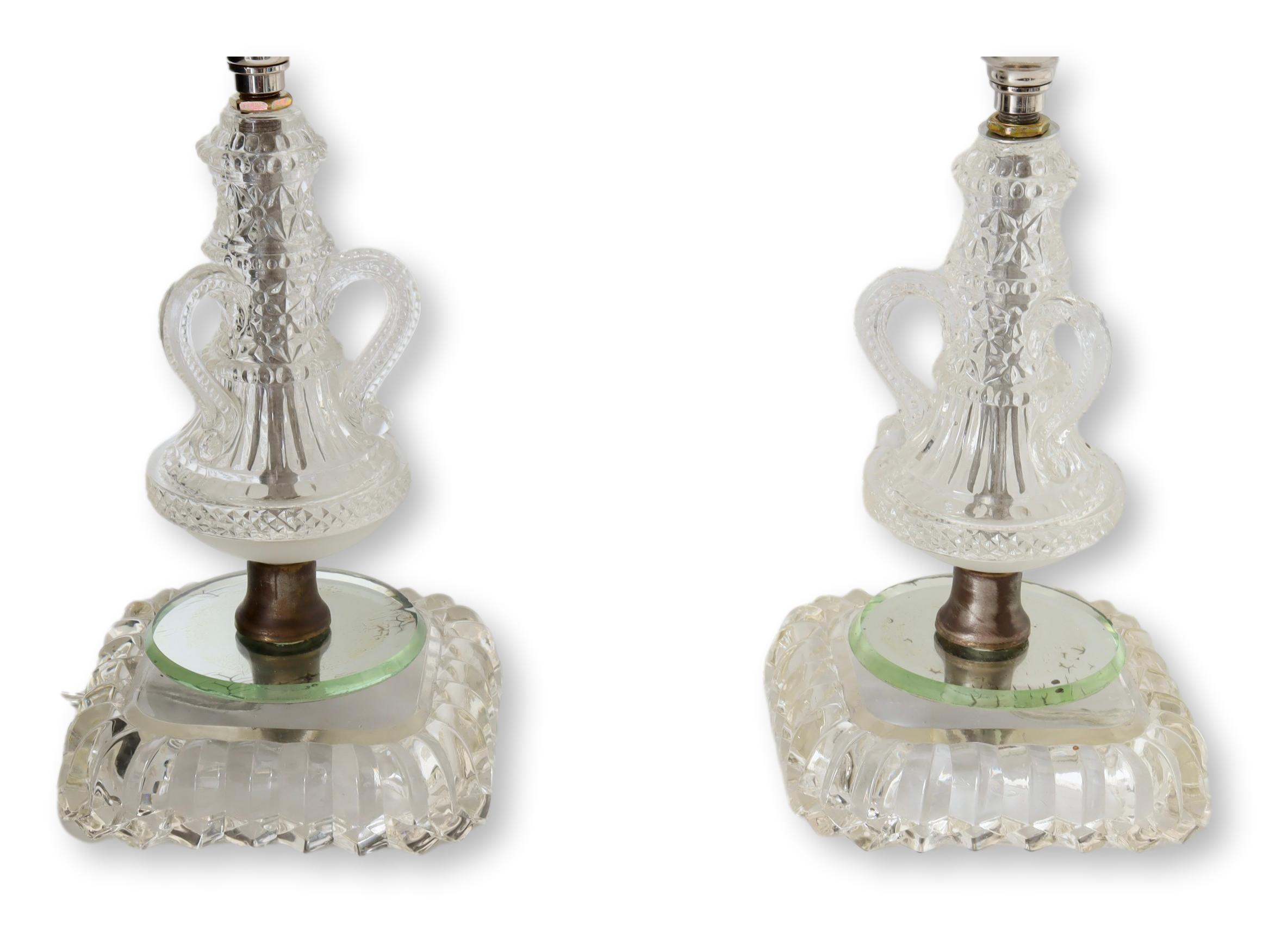 Midcentury Glass Nightstand Lamps, Pair
