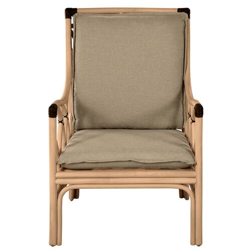 Milano Rattan Lounge Chair with Linen Cushion, Natural/Beige