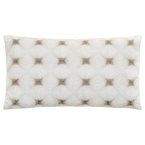 Miley 15x26 Embroidered Lumbar Pillow, Ivory