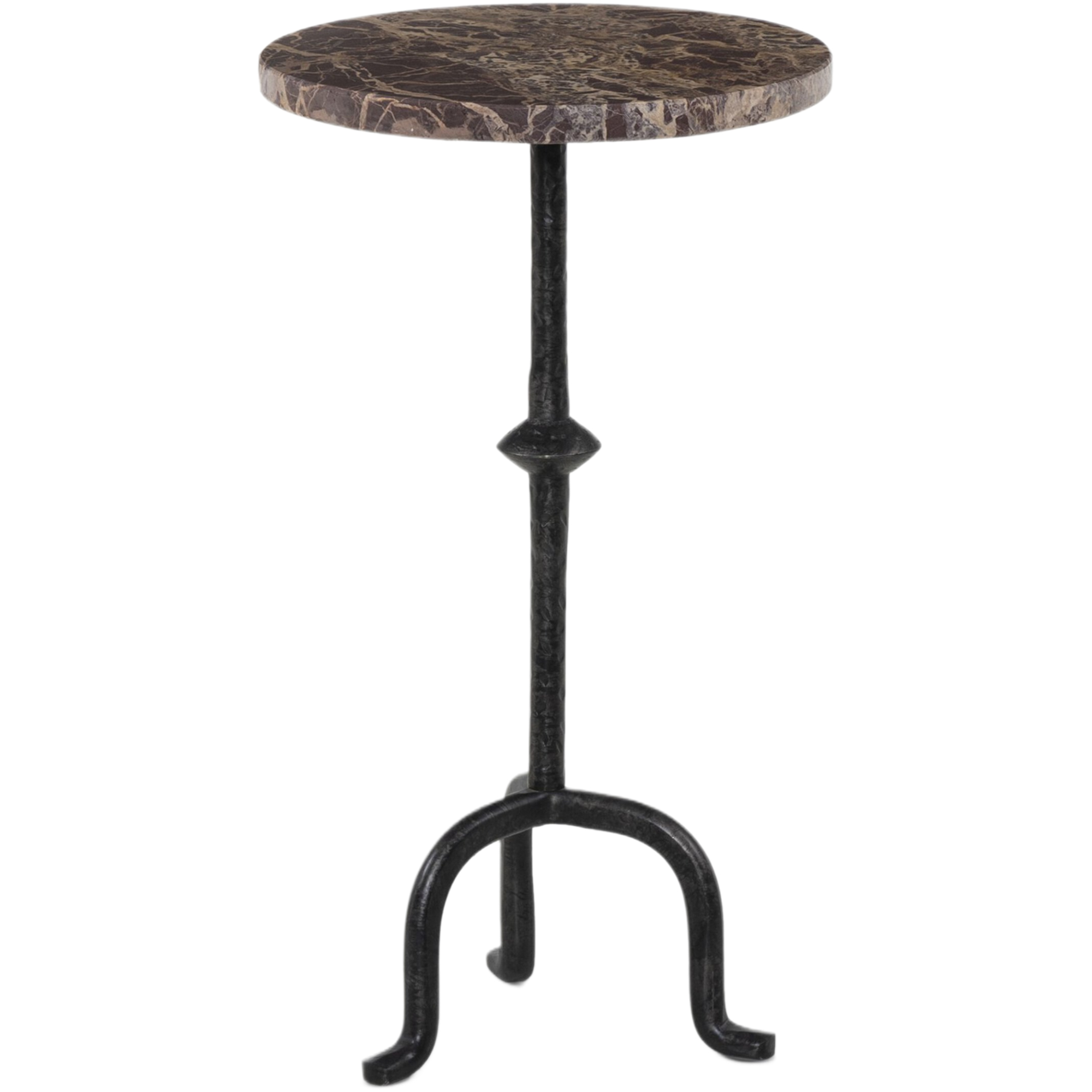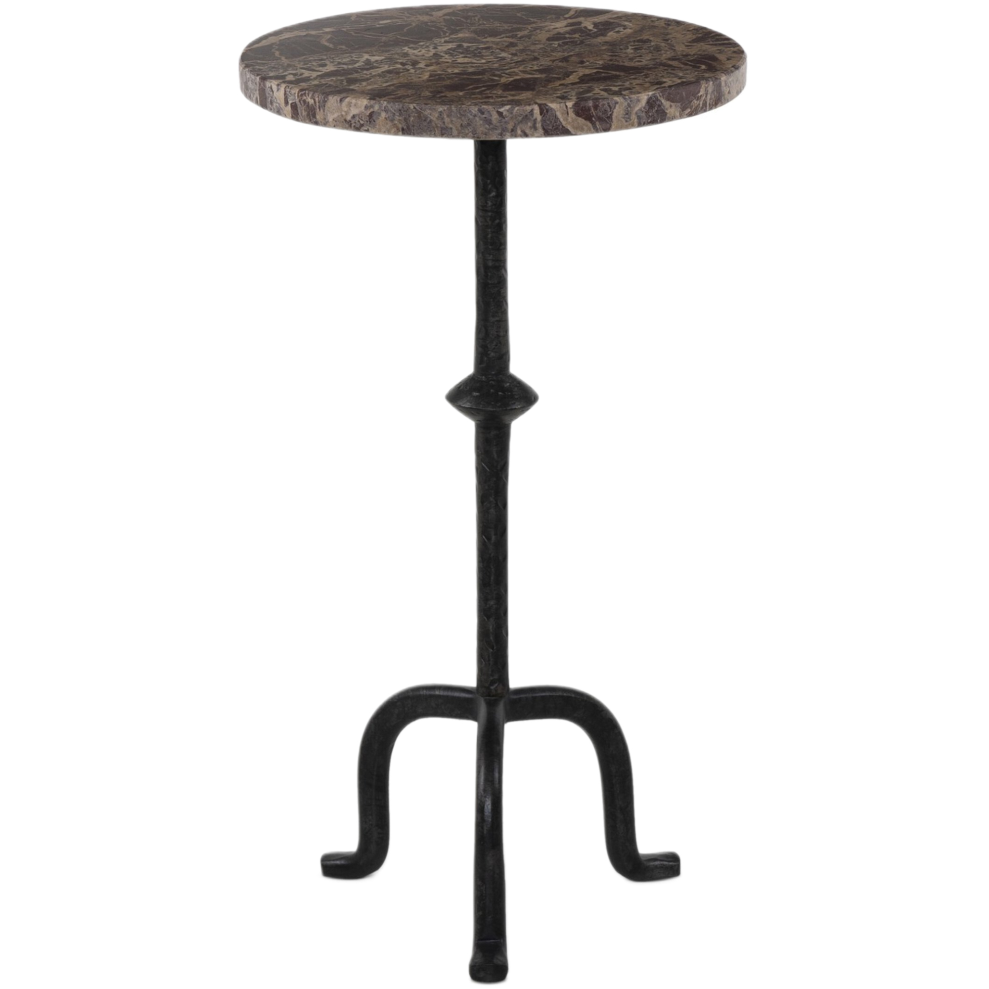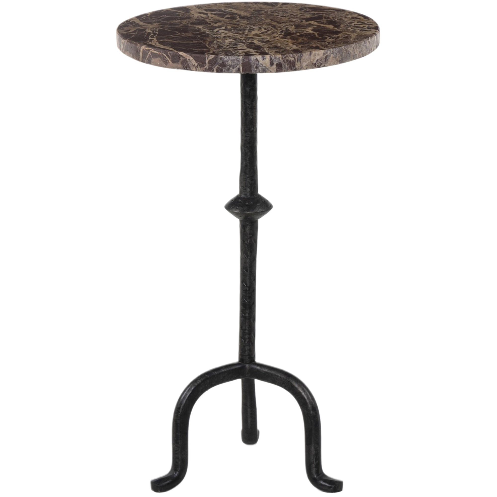 Ysin End Table, Veined White Marble/Hammered Gunmetal