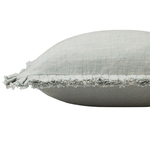 Marisca Fringe 18" Linen Pillow, Natural/Blue